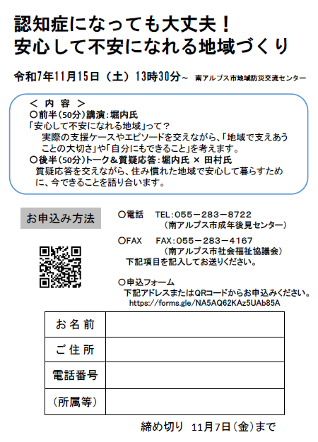 「認知症になっても大丈夫!安心して不安になれる地域づくり」