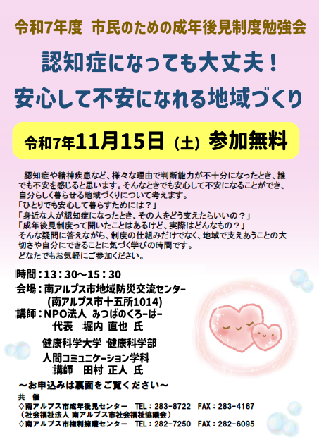 問合せ・申込み先:成年後見センター ☎ 283-8722 FAX 283-4167